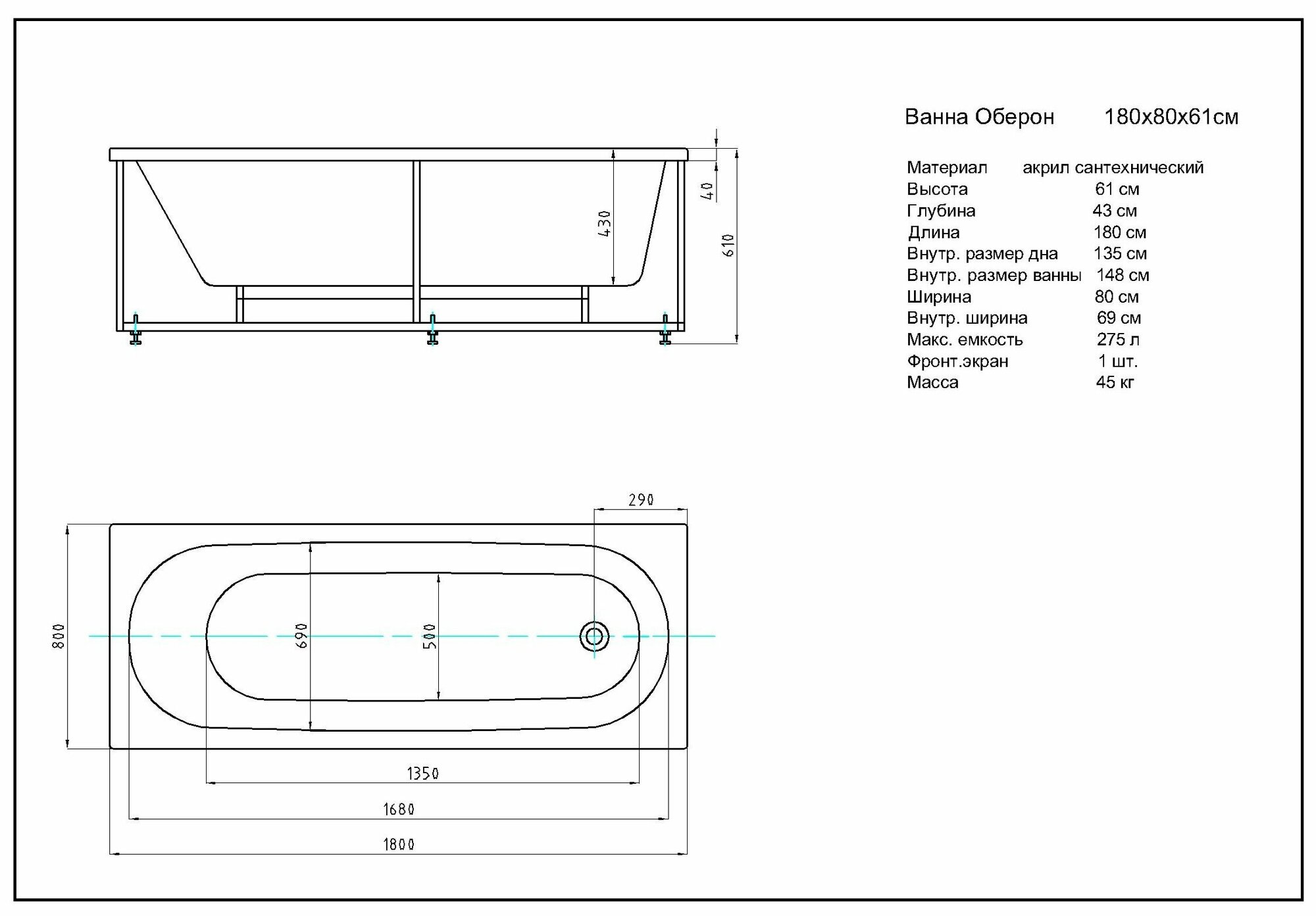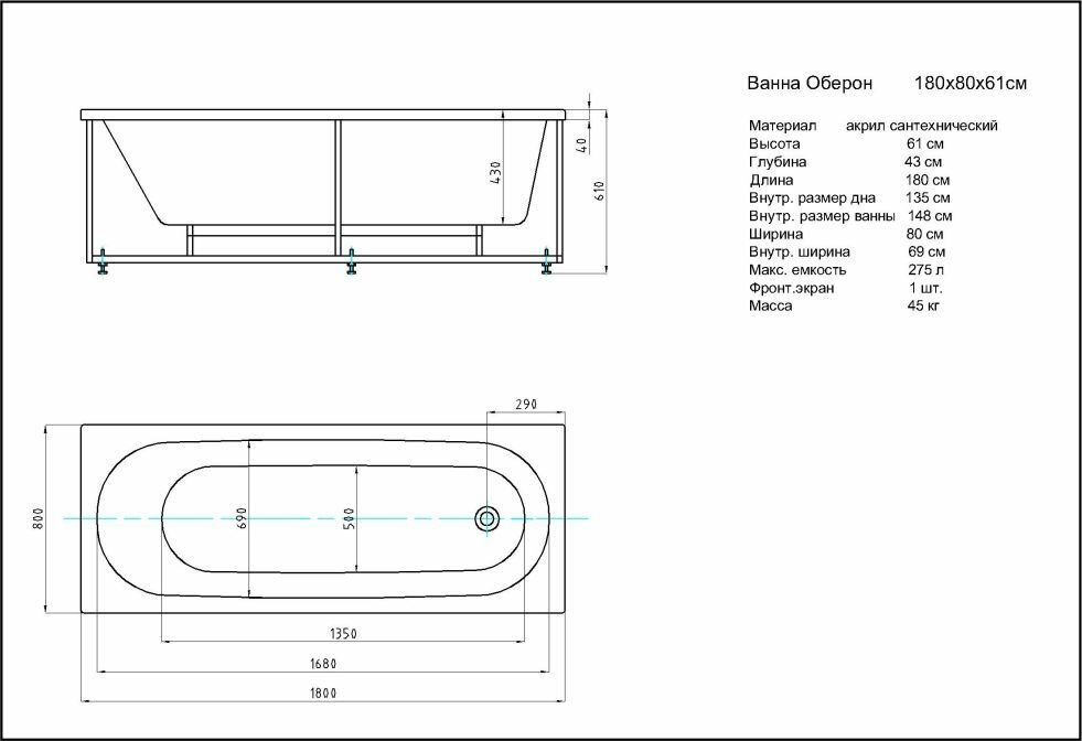 Оберон 180 (только ванна с уп.)