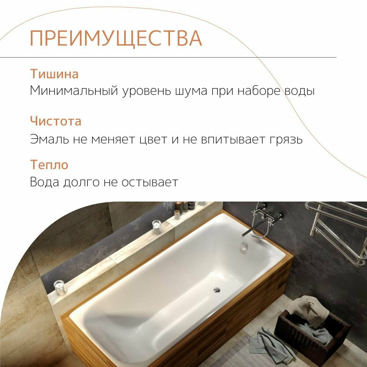 | Отзыв: | Вода набирается тихо, вода долго остается теплой. Эмалированное покрытие красиво блестит и полностью белое. Переживали, что вода будет застаиваться возле слива, но нет — все хорошо. Выбирали между двумя моделями с длиной 160 см. Остановились все-таки на этой, потому что больше объем. |