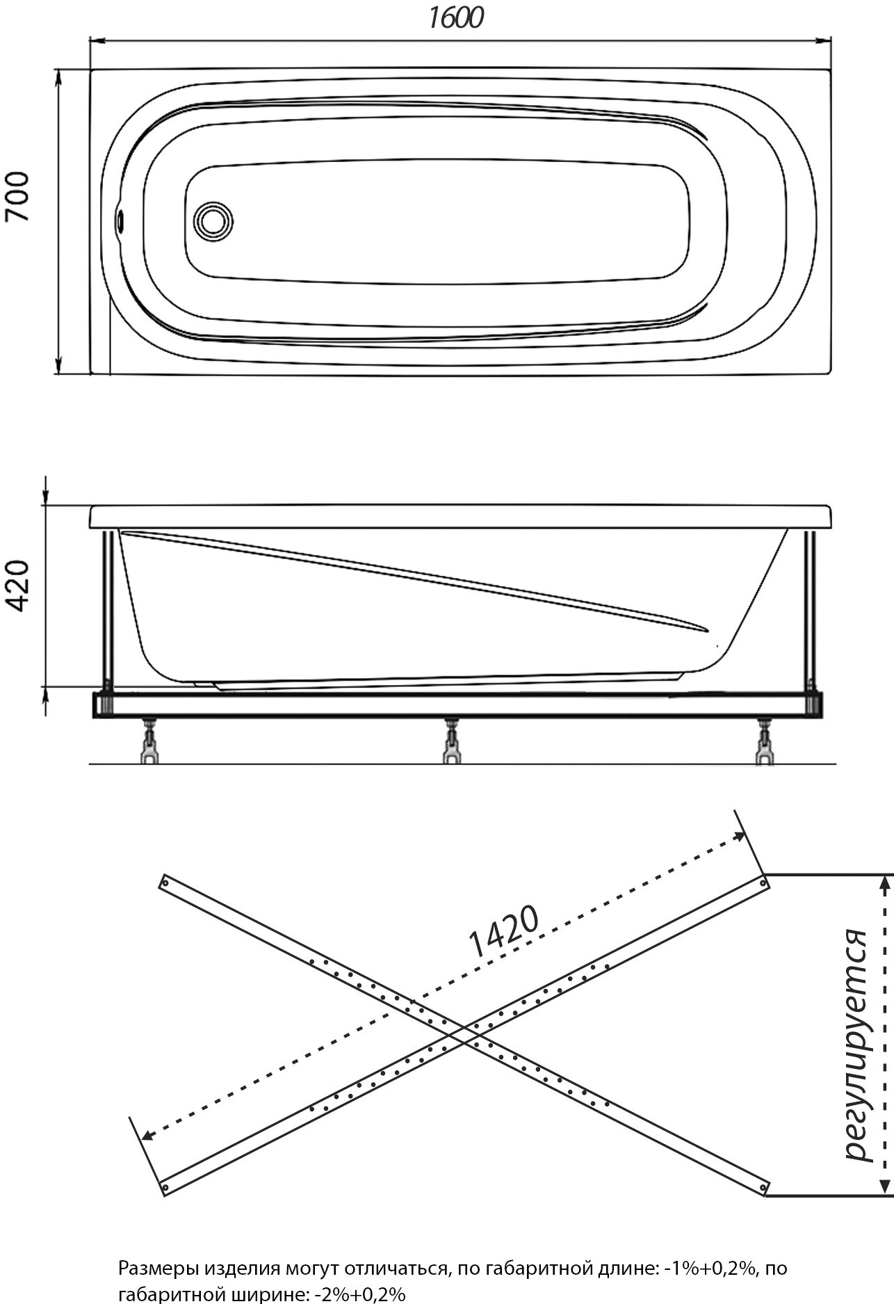 Акриловая ванна DIWO Кострома 160x70 прямоугольная, белая, российская интересное: