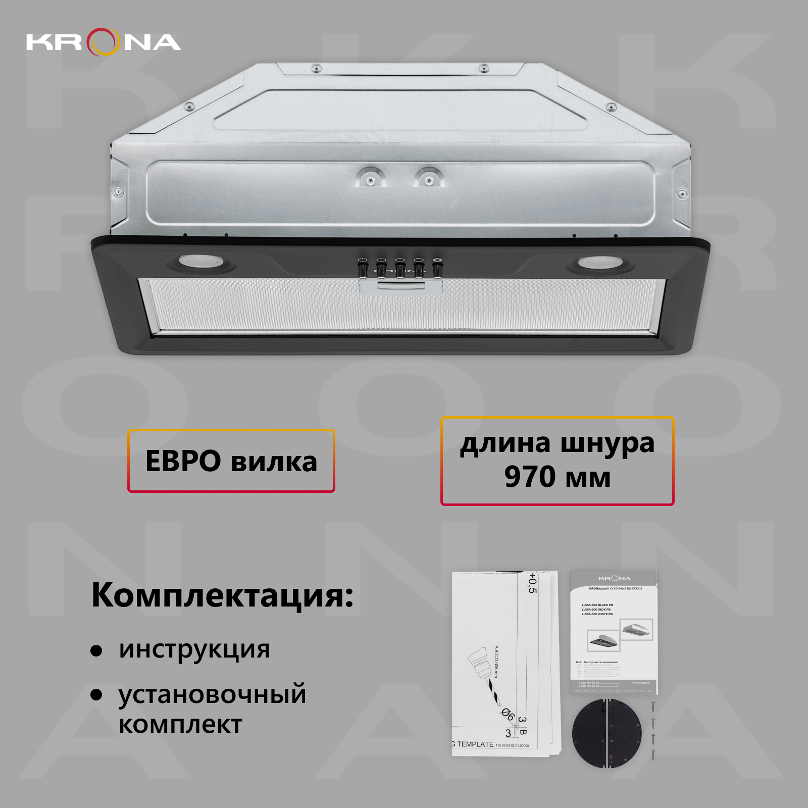 СохранитьВытяжка Krona LUISA 600 BLACK PB интересное: