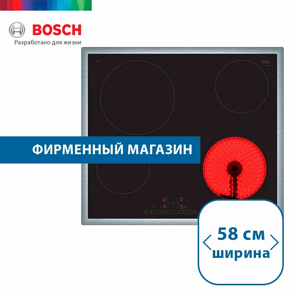 Электрическая варочная панель Bosch PKE645FN2E, цвет панели черный, цвет рамки серебристый