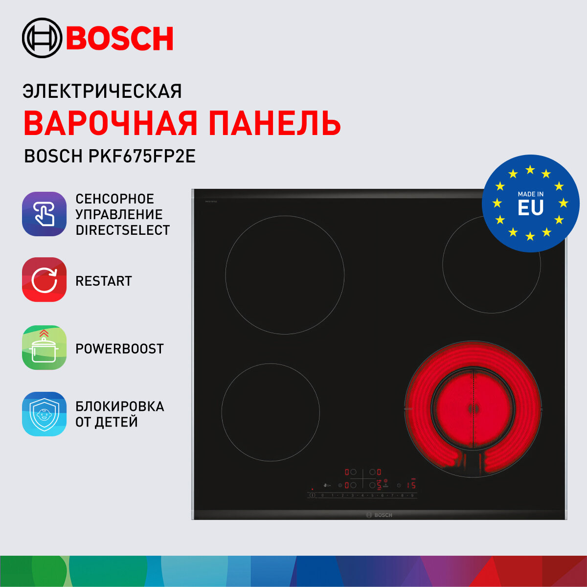 Электрическая варочная панель Bosch PKF675FP2E интересное:
