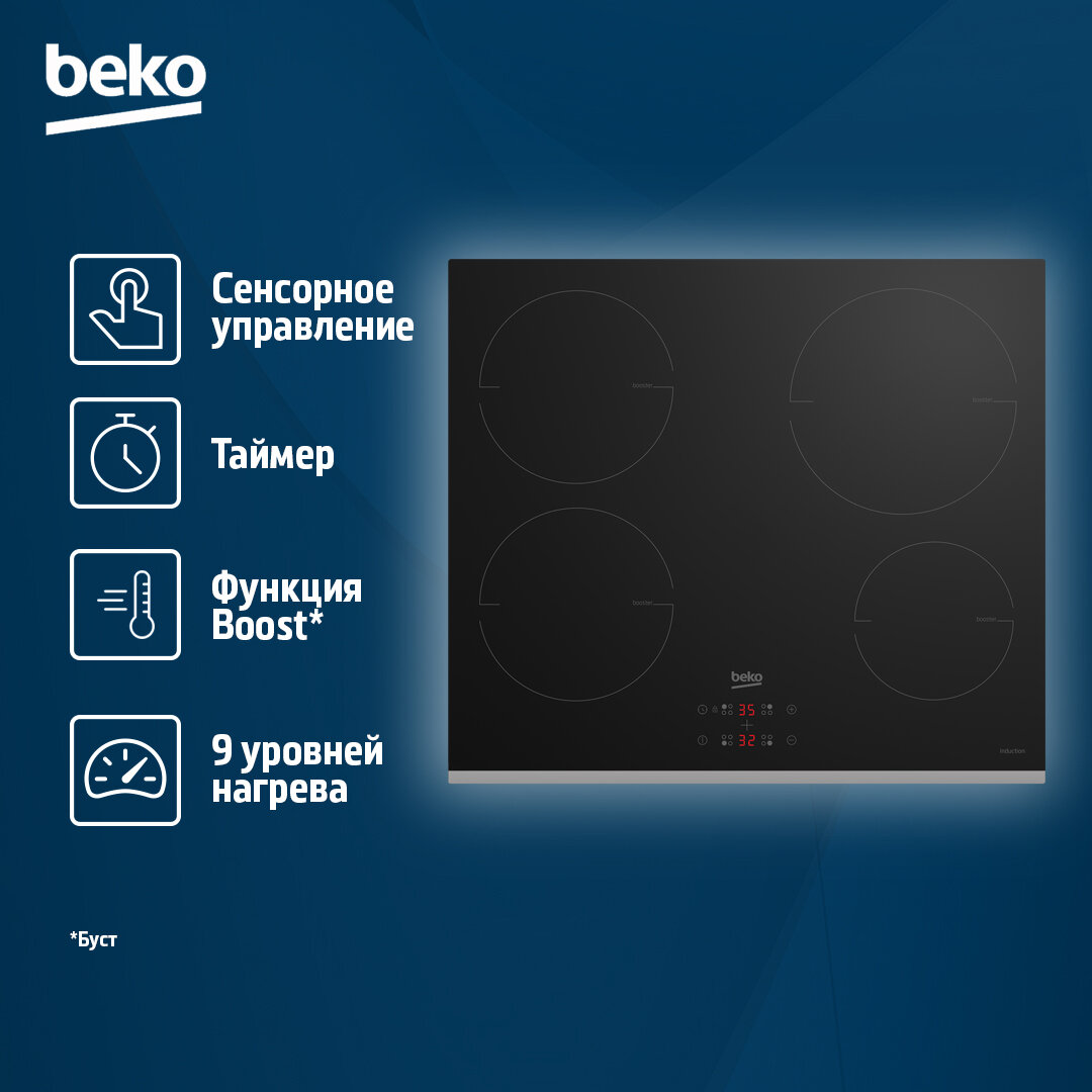 Варочная поверхность Beko HII 64401 Mtx, индукционная, 4 конфорки, сенсор, чёрная .