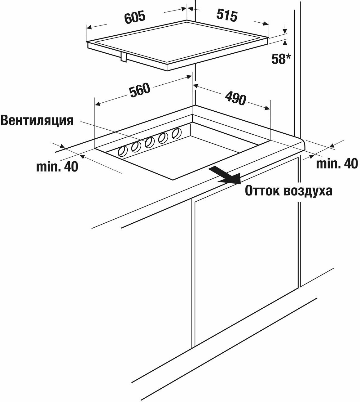 | Ширина для встраивания | 60 см |
