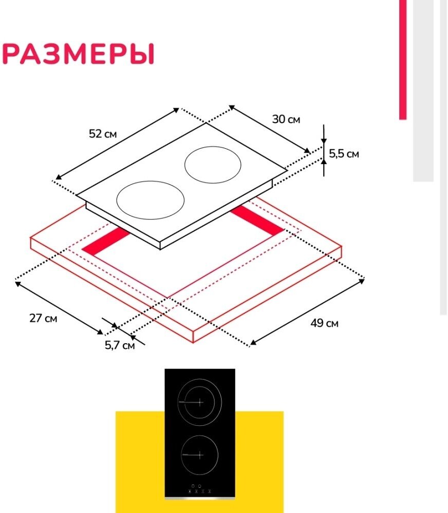 | Общее количество конфорок | 2 |