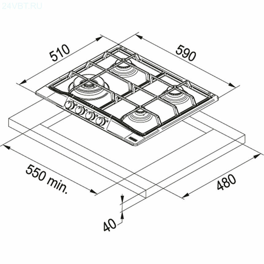 Встраиваемые газовые панели Franke/ Better, Вар.пов.газ. FHTL 604 3G TC CO C, ПРО-ВО италия