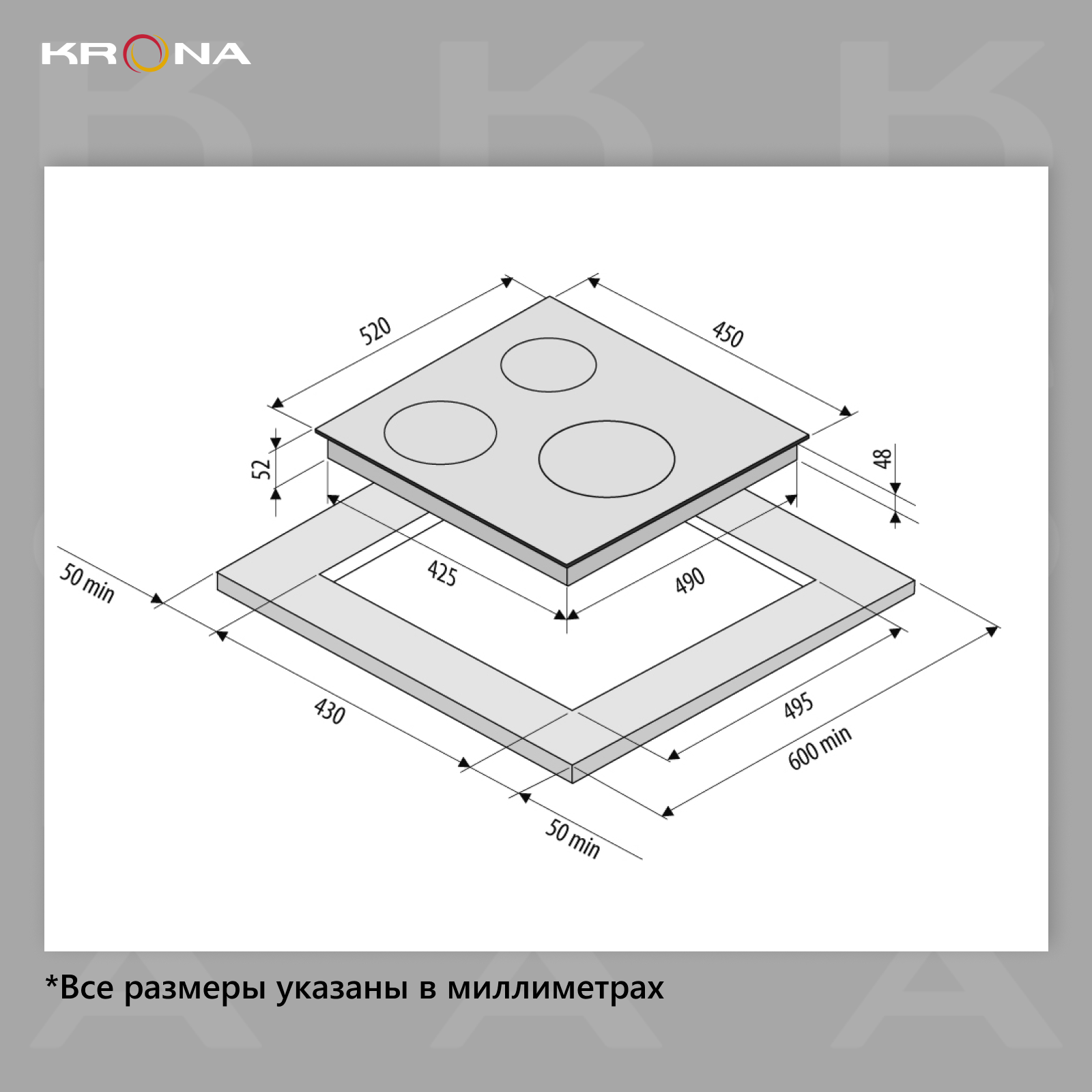 Варочная панель Krona CORTO 45 BL 520x450x52 Черный