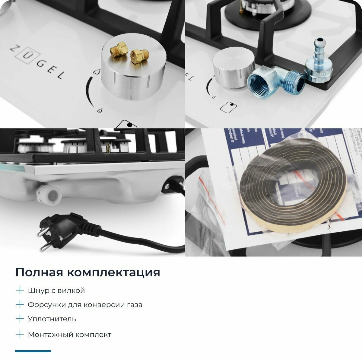 Встраиваемая газовая варочная панель ZUGEL ZGH291W белая