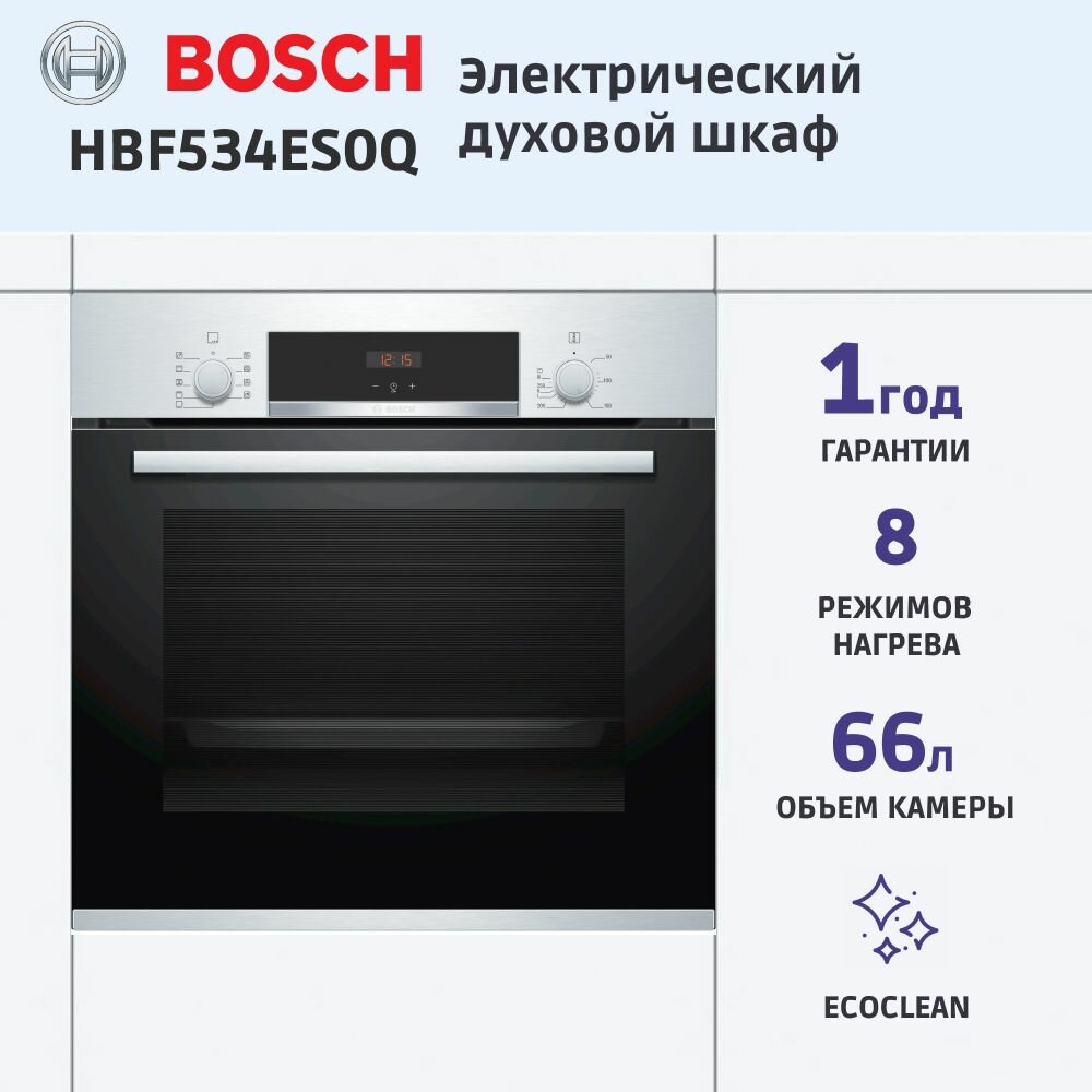 ABC Духовой шкаф Bosch Serie 4 HBF534ES0Q, встраиваемый, электрический, A, серебристо-черный (60см, 3300Вт)
