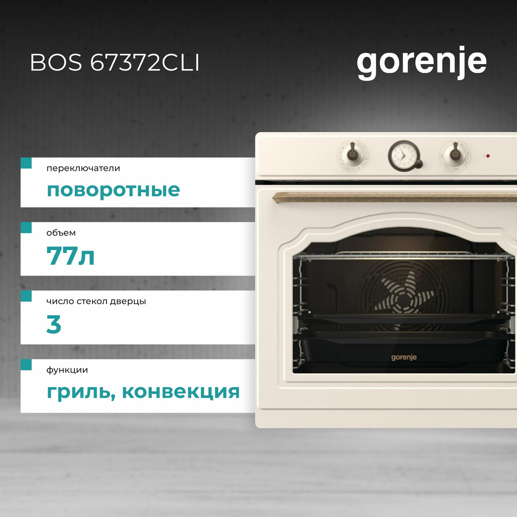 Духовой шкаф Gorenje BOS67372CLI бежевый, объём 77л, покрытие: эмаль, электрический гриль, программ духовки: 11