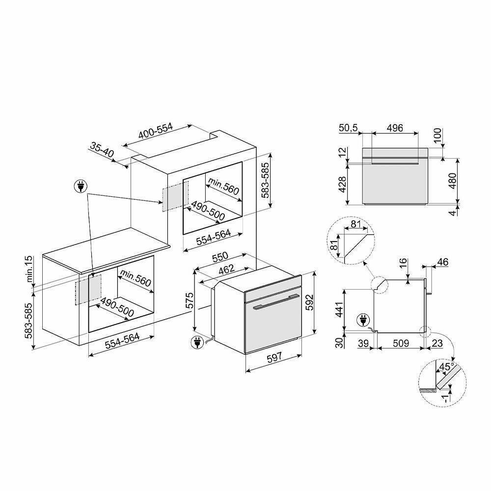 Встраиваемая электрическая духовка SMEG/ Многофункциональный духовой шкаф, 60 см, 10 функций, серебристое стекло Stopsol