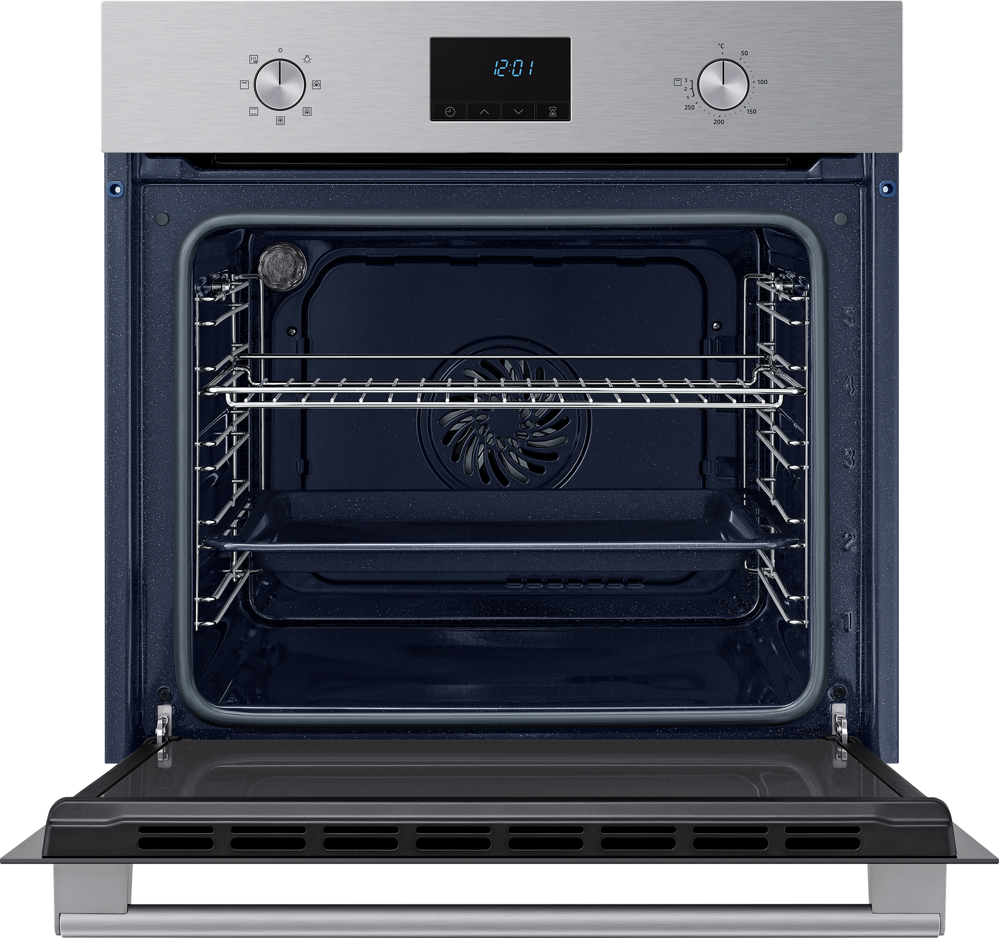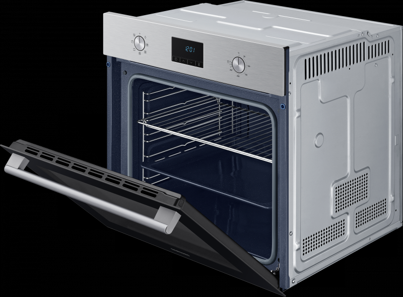 Электрический духовой шкаф Samsung NV68A1110BS/WT, встраиваемый, 68 л, с грилем и конвекцией, утапливаемыми переключателями, таймером и защитой от детей, цвет нержавеющая сталь