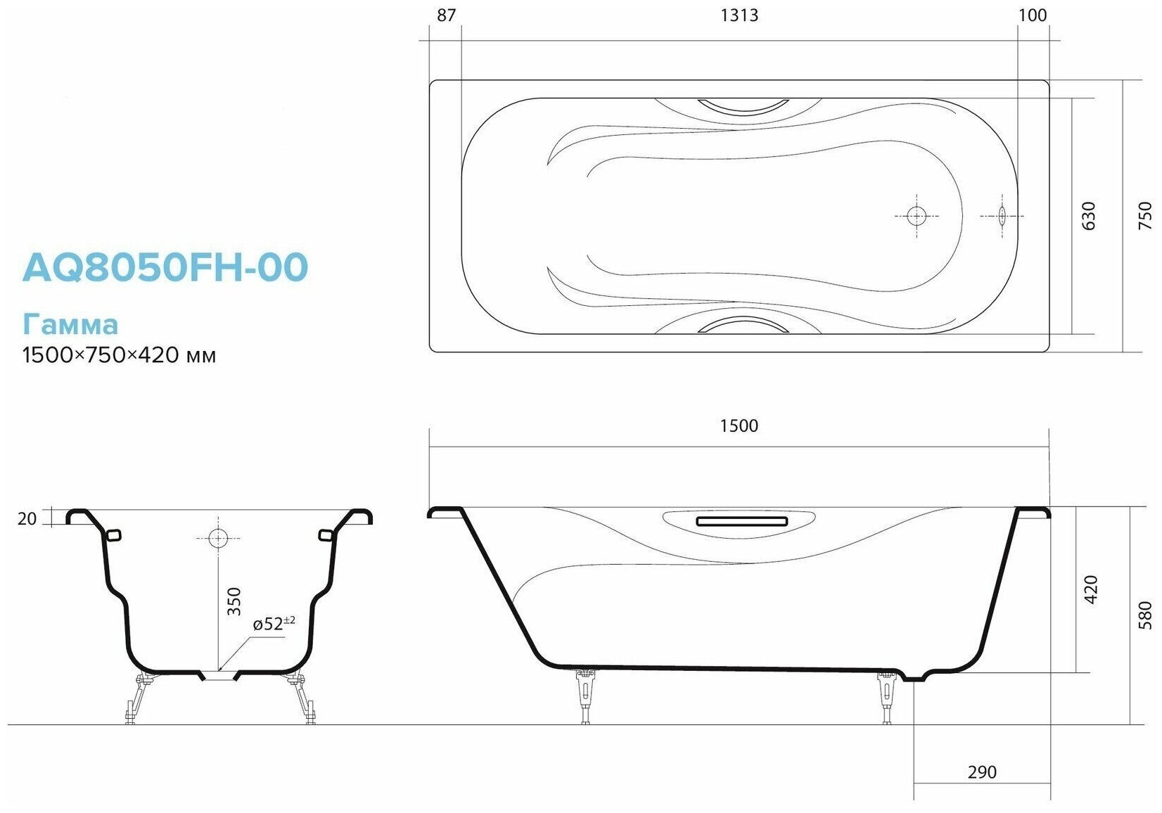 СохранитьЧугунная ванна Aquatek Гамма 150x75 AQ8050FH-00 интересное: