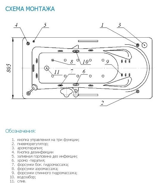 | Подробная комплектация | ванна, каркас, система слива/перелива, подлокотники - 2шт. |