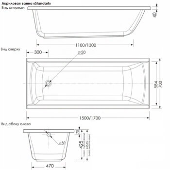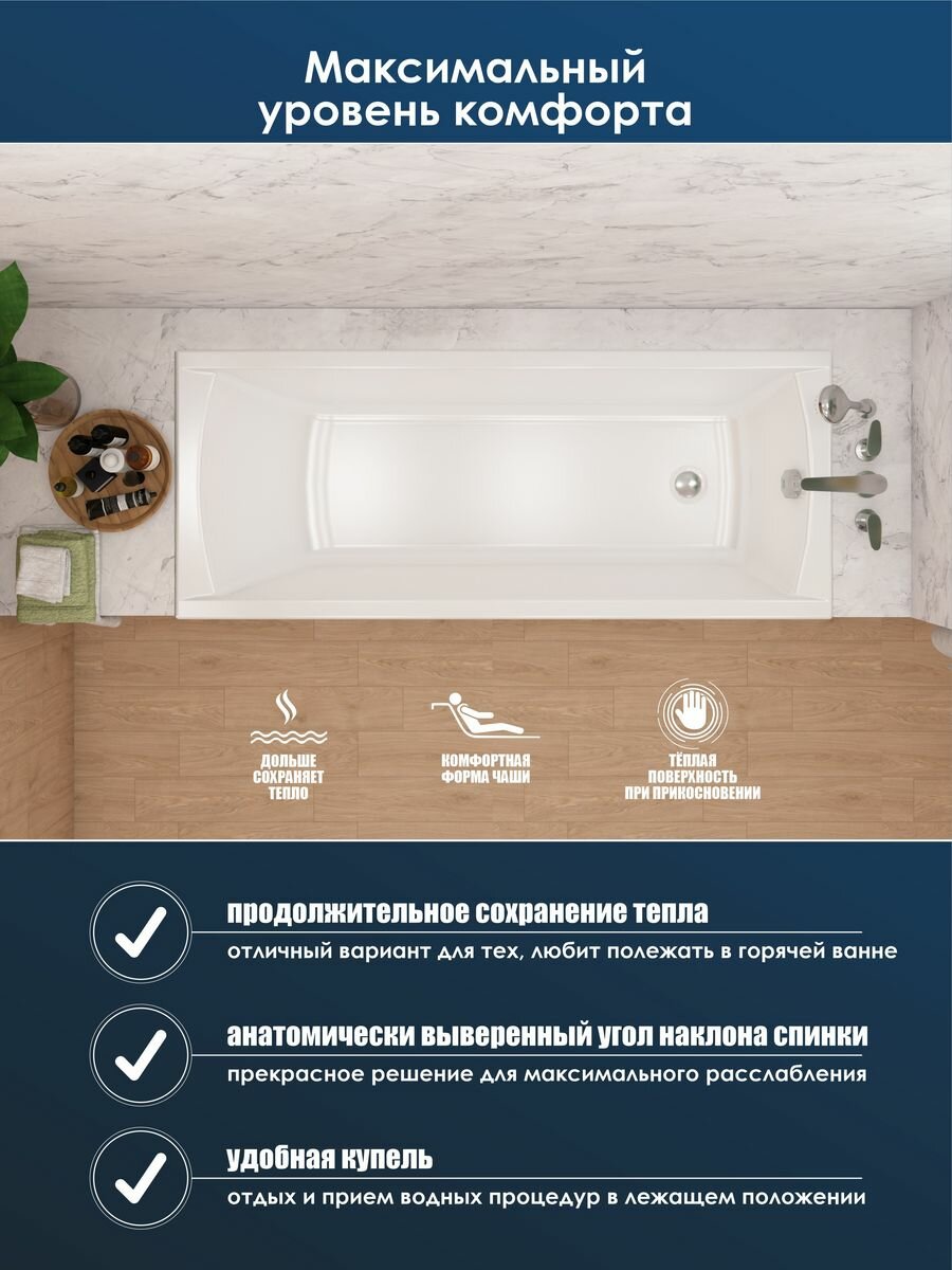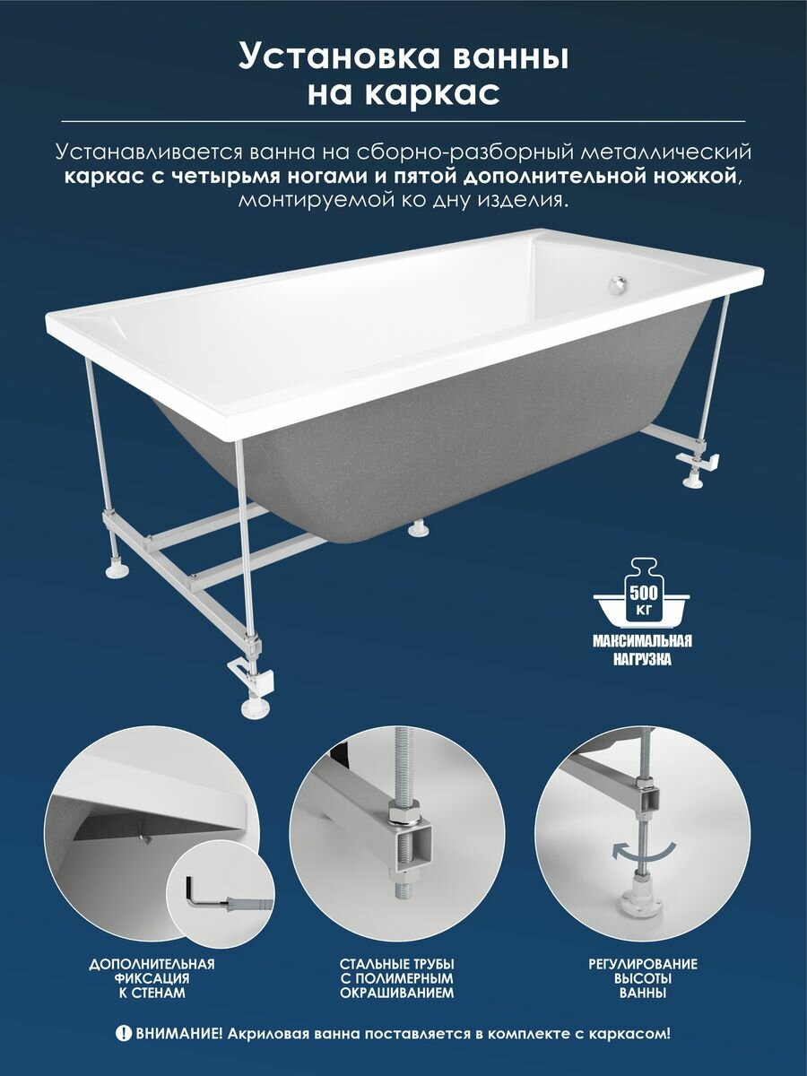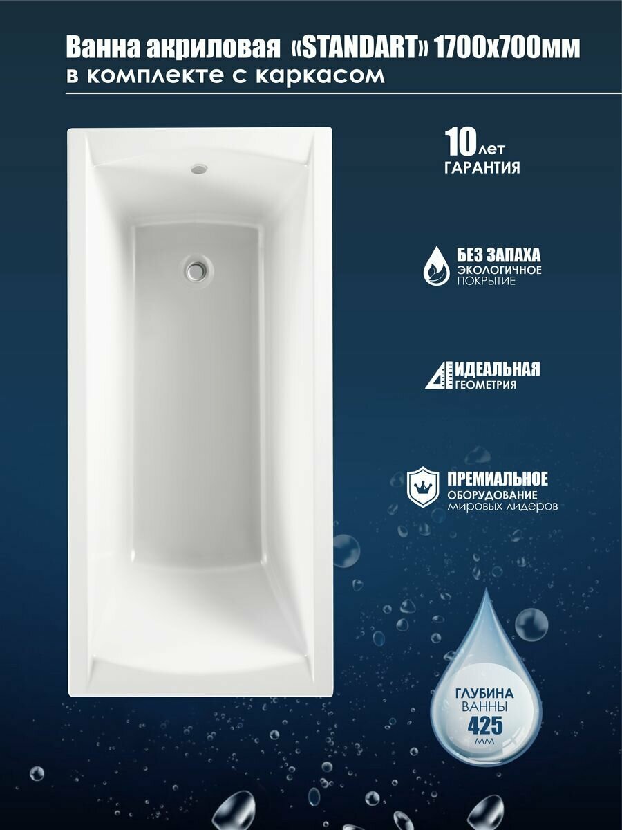 Ванна акриловая стандарт 1700х700мм на каркасе (15) интересное: