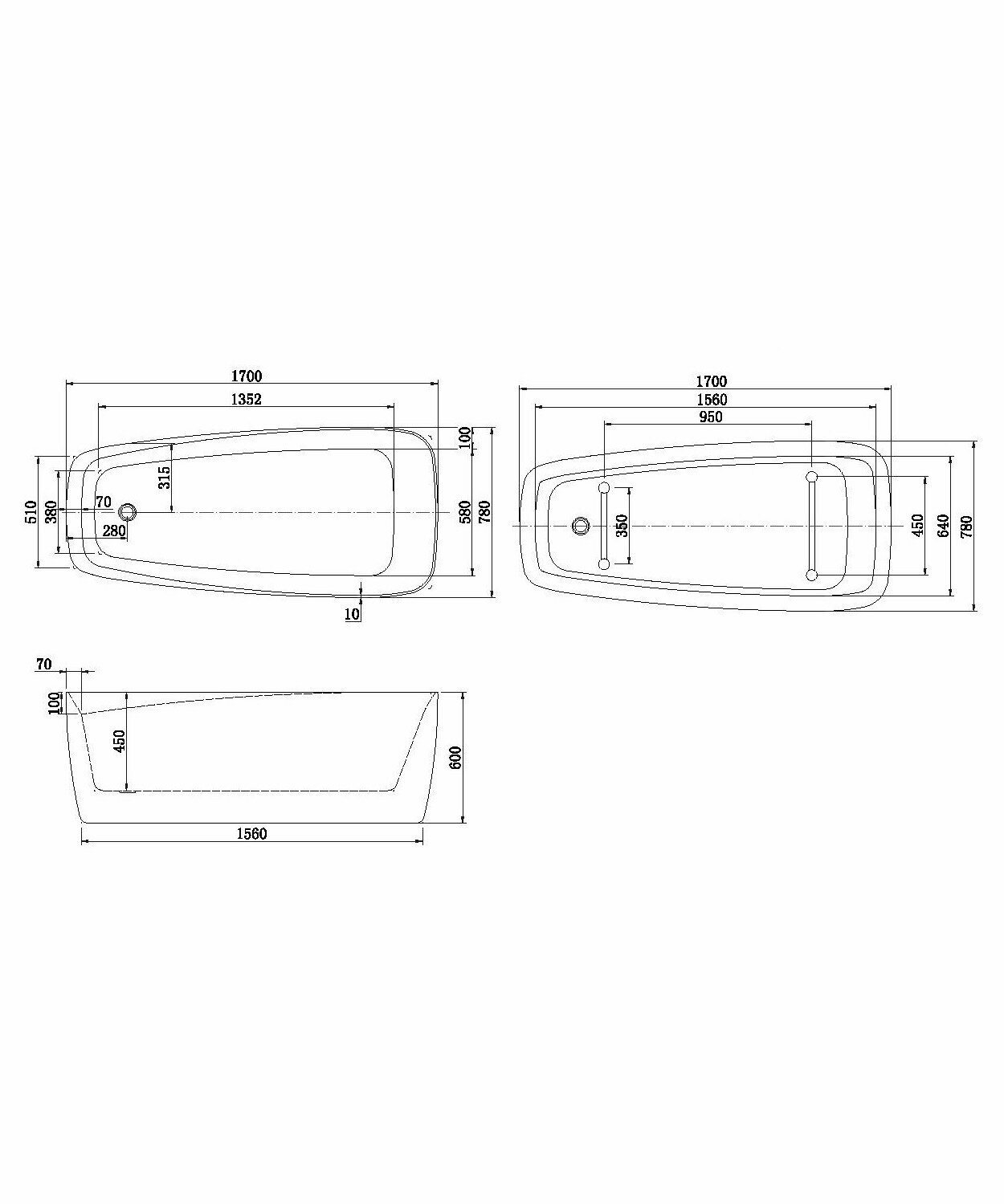 Акриловая ванна Aquanet Fine 170x78 95778 Gloss Finish