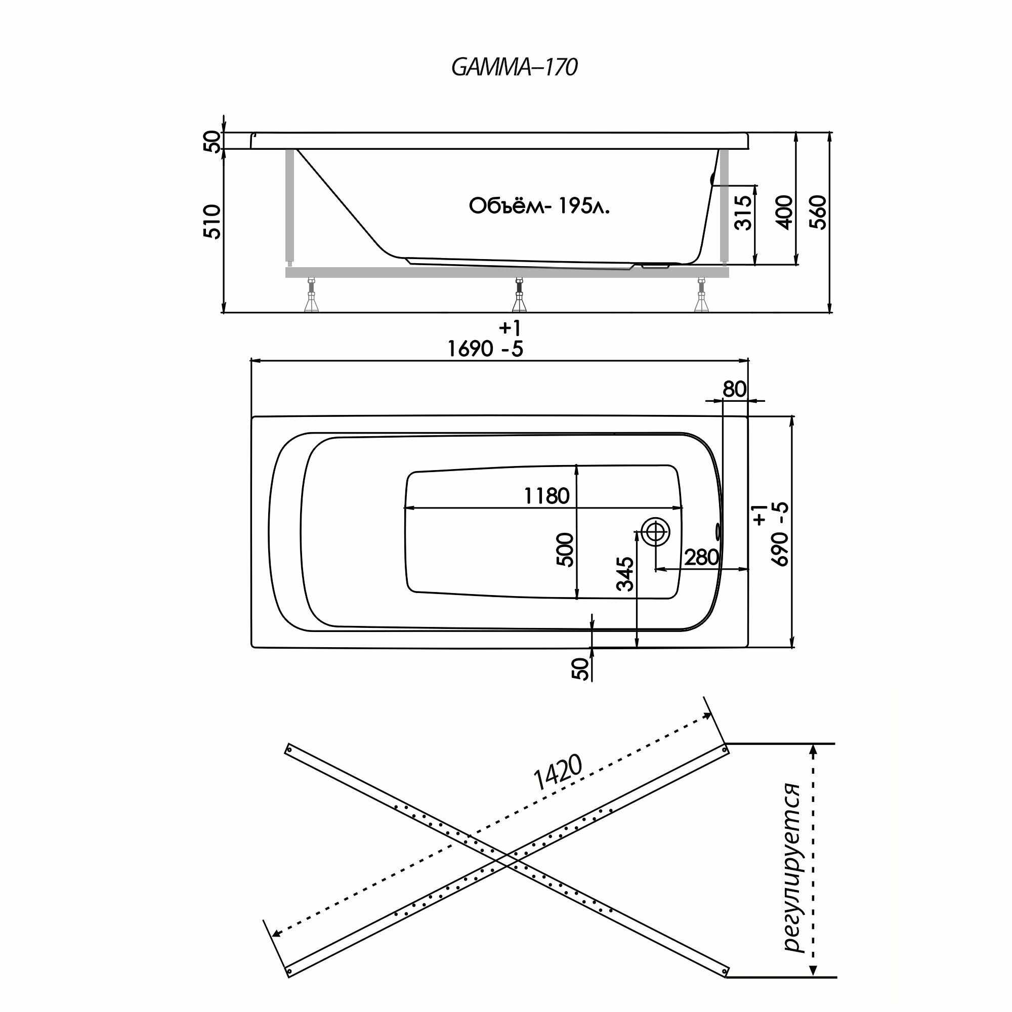 Акриловая ванна 1ACReal Gamma 170x70