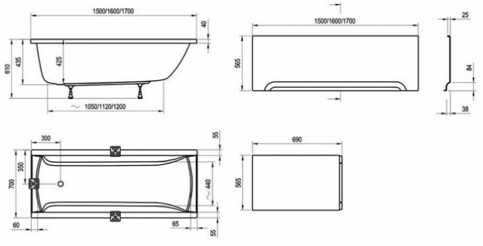 | Дополнительная информация | литьевой акрил Lucite вертикального выдува; равномерная толщина материала по всей площади ванны; армирование стекловолокном; приобретается отдельно: панель, подголовник, универсальная ручка, ножки |