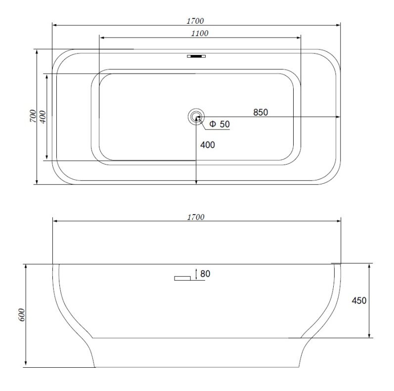 Ванна акриловая отдельностоящая ABBER AB9220 170x70
