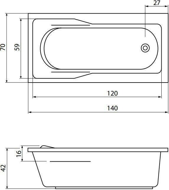 Ванна акриловая Cersanit Santana 140x70 63348 белый