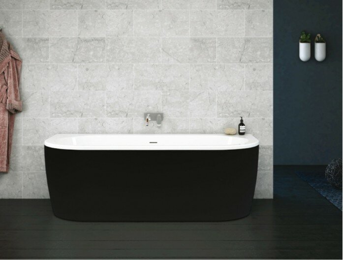 Ванна акриловая Cezares Slim 180х79 см SLIM WALL-180-80-60-NERO-SET со сливом-переливом, белая с черной матовой панелью