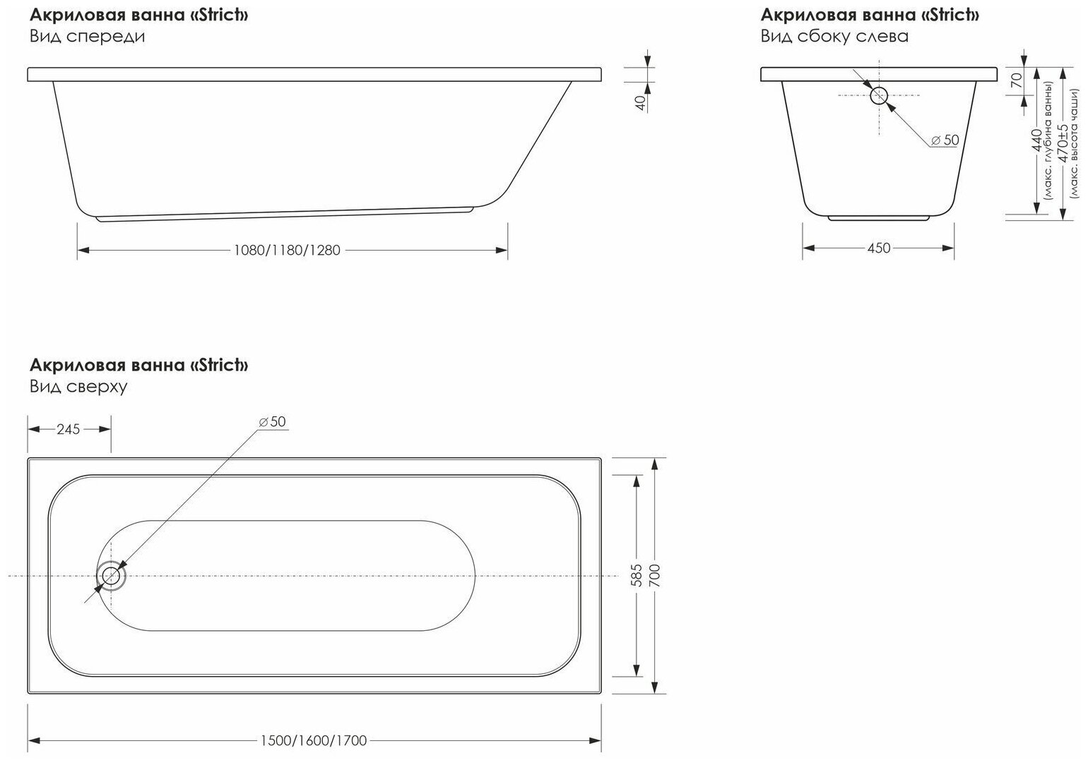 Ванна акриловая в комплекте с каркасом STRICT 170х70 интересное: