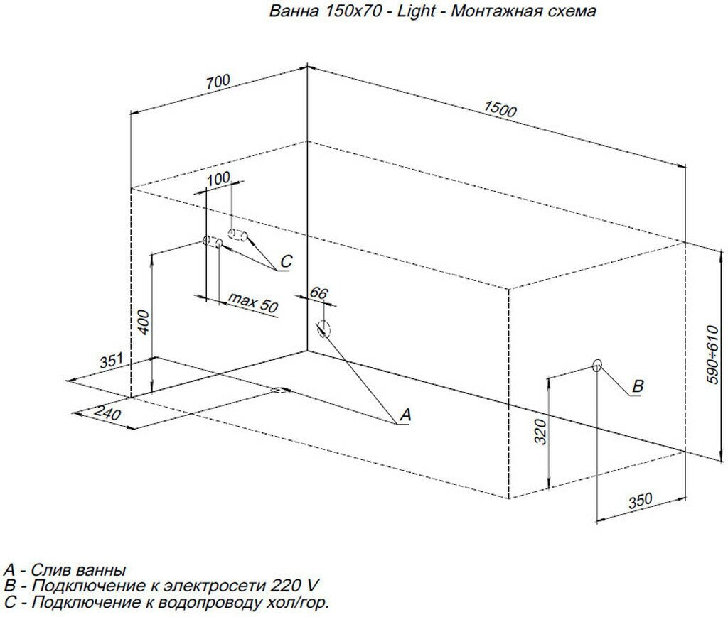 Акриловая ванна Aquanet Light 150x70 интересное: