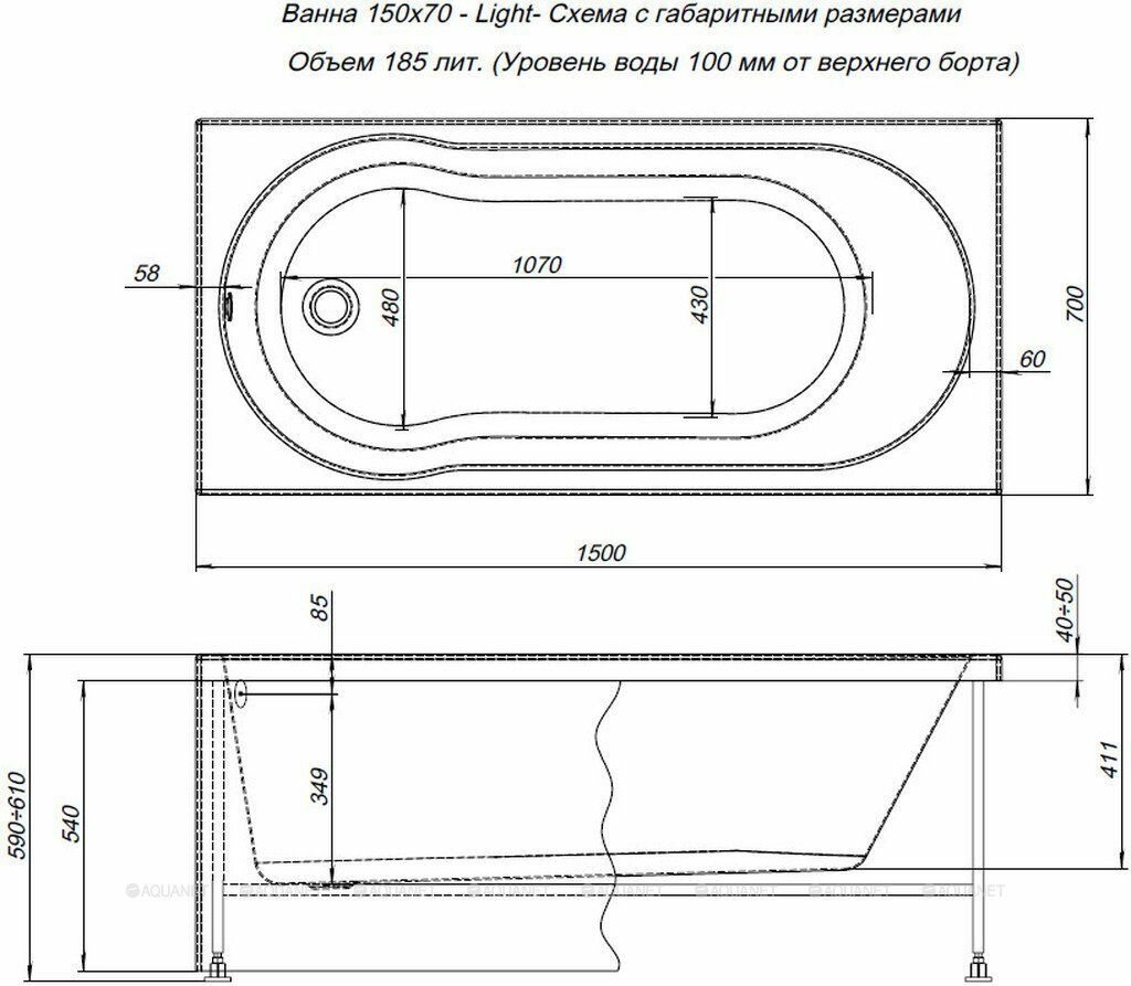 Купить Акриловая ванна Aquanet Light 150x70 (с каркасом)