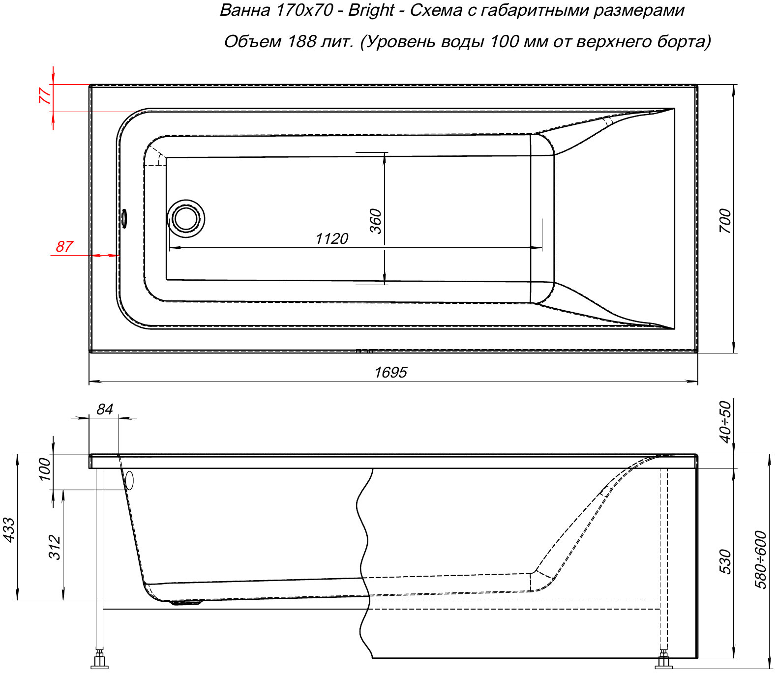Акриловая ванна Aquanet Bright 170x70 интересное: