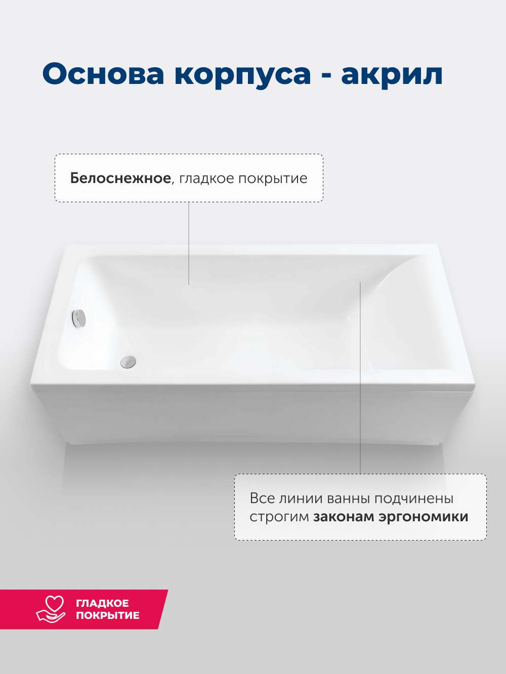 Акриловая ванна Aquanet Family Elegant B 180x80 3806-N-MW Matt Finish