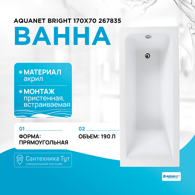 Акриловая ванна / ванная Aquanet Bright 170x70 267835 без гидромассажа