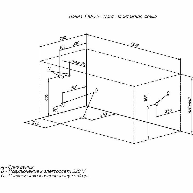 Купить Акриловая ванна Aquanet Nord 140x70 (с каркасом)
