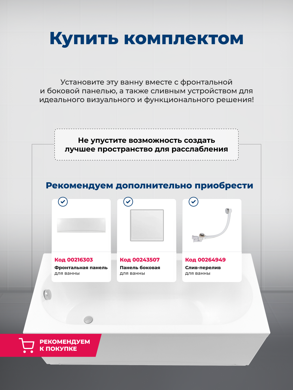 Акриловая ванна Aquanet Family Smart 170x78 88778-MW код 00260053, цвет белый матовый