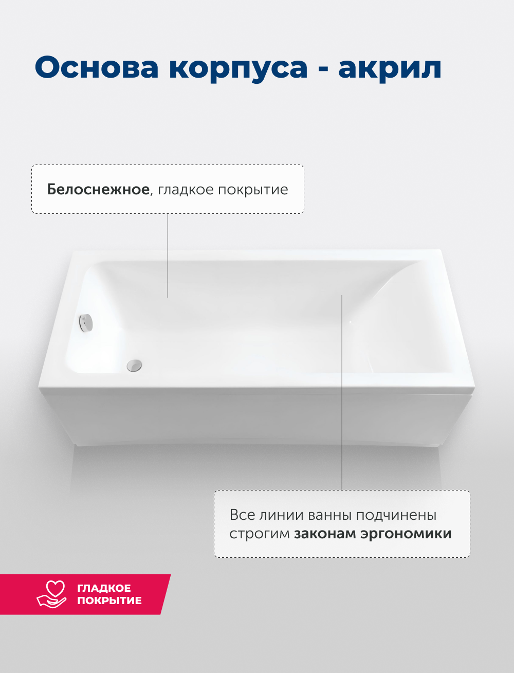 Акриловая ванна Aquanet Smart 170x78 00260047 , цвет белый глянцевый