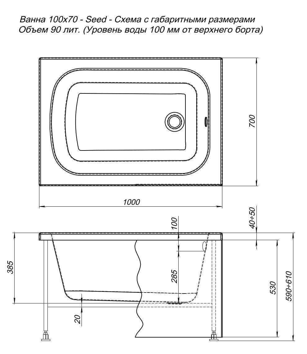 Акриловая ванна Aquanet Seed 100x70 00216308