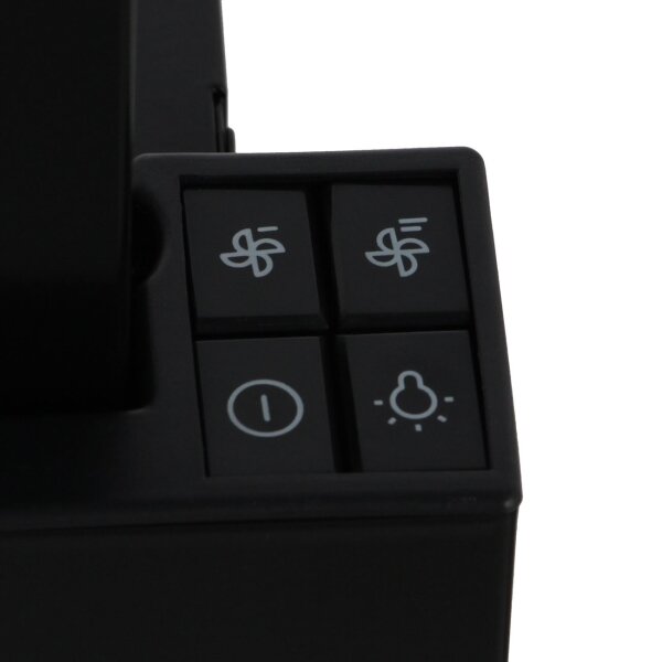 Управление очень простое и удобное - одним нажатием вытяжка включается, повторным - отключается, и учитывая, что используется она в режиме очистки воздуха only, т.е. кроме кнопки третьей скорости иных не применяется, то этот процесс уже давно доведён до автоматизма. Также просто включается и освещение. |