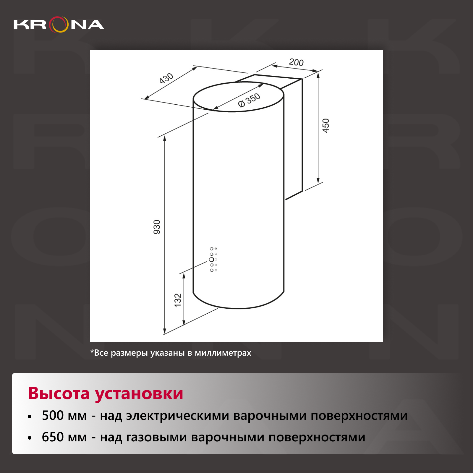 Каминная вытяжка Krona Tina 350 Black 3P .
