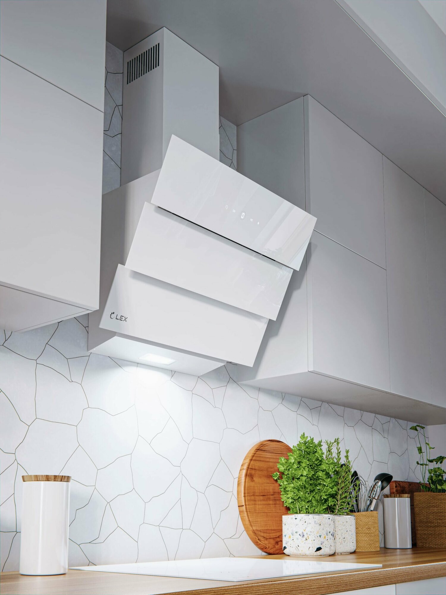 Вытяжка для кухни Lex RIO GS 600 White, 3 скорости, таймер, сенсорное управление, LED подсветка, алюминиевый фильтр