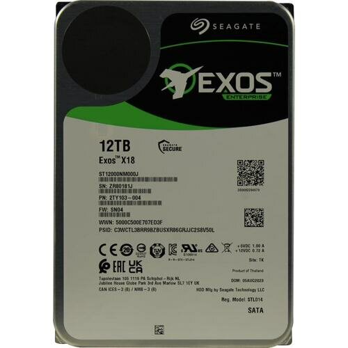 Seagate Жесткий диск 12TB Seagate Exos X18 (ST12000NM000J) SATA 6Gb/s, 7200 rpm, 256mb buffer, 3.5"