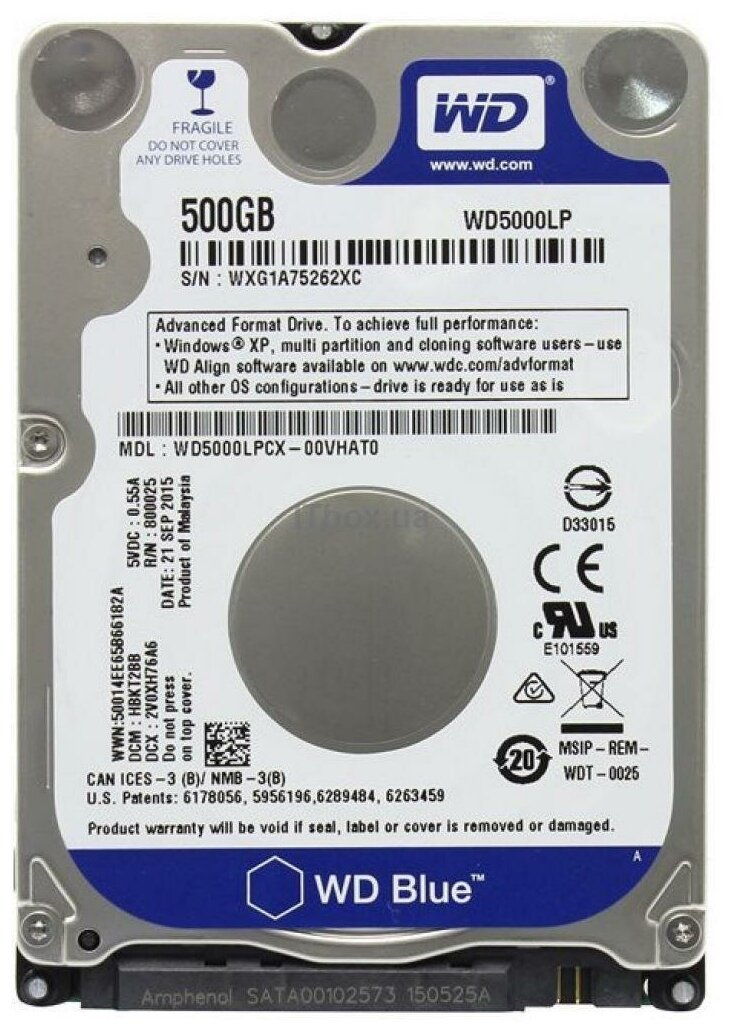 Жесткий диск HDD 2.5" WD Blue 500Gb WD5000LPZX