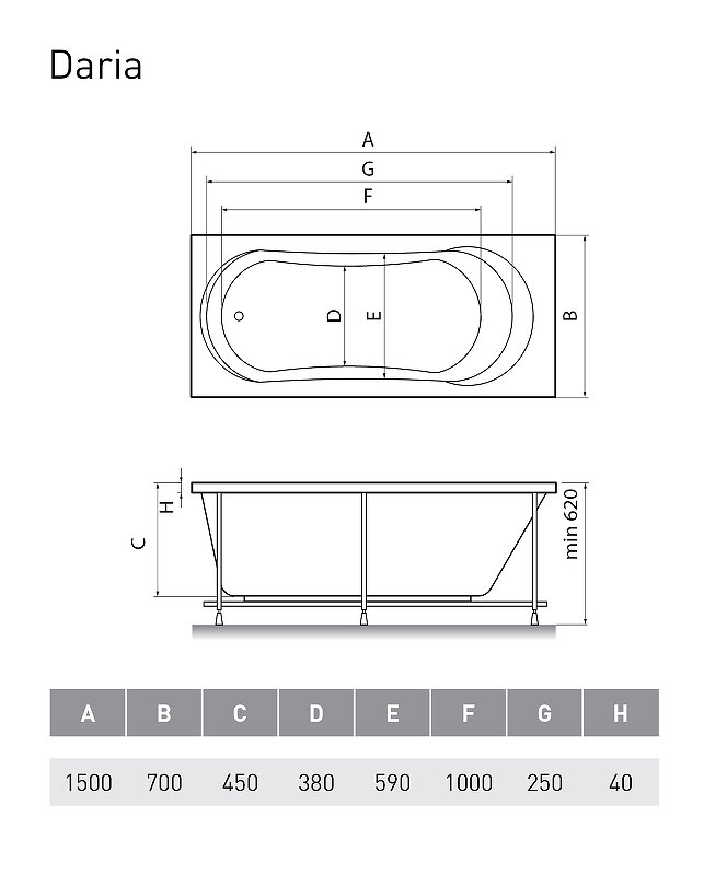Акриловая ванна 150x70 см Relisan Daria GL000008875