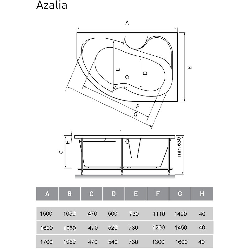 Акриловая ванна (170х105) Vayer Azalia Гл000006729 правая