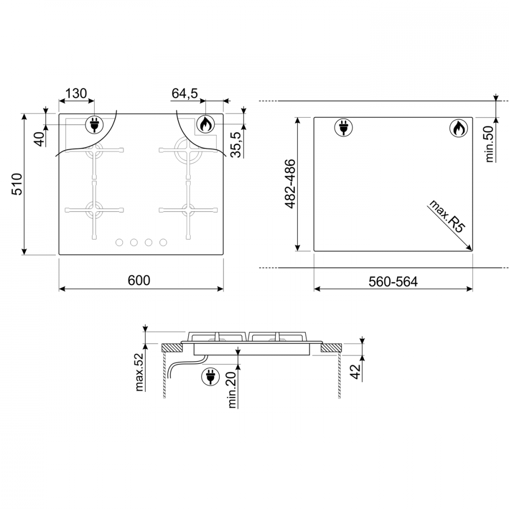 | Ширина для встраивания | 56 см |