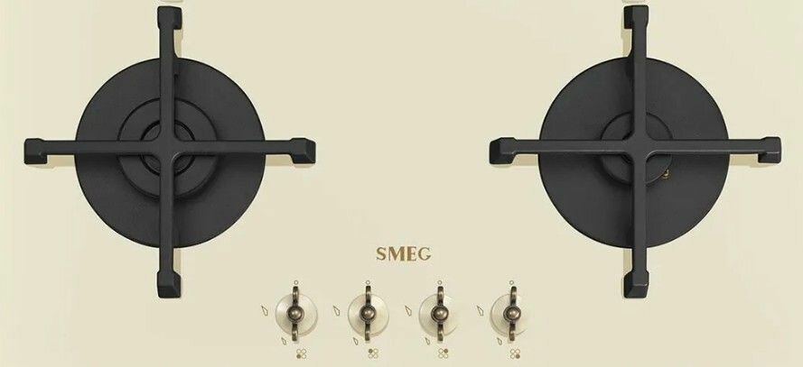 Встраиваемая газовая панель SMEG/ Coloniale, Газовая варочная панель, 60 см, цвет кремовый, фурнитура латунная, прямой край