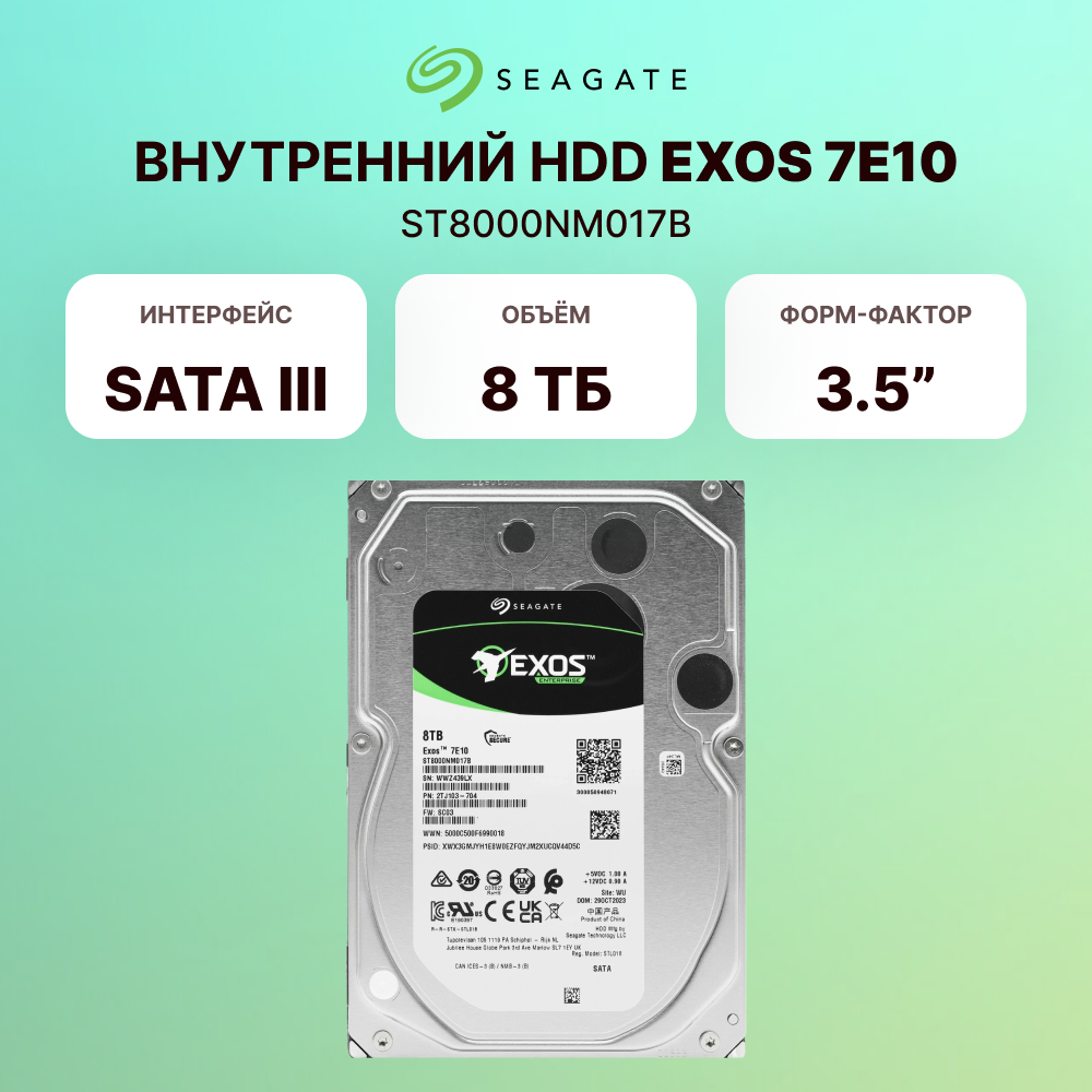 Жесткий диск HDD Seagate Exos 7E10 ST8000NM017B/SATA III/8 TB 7200об/мин