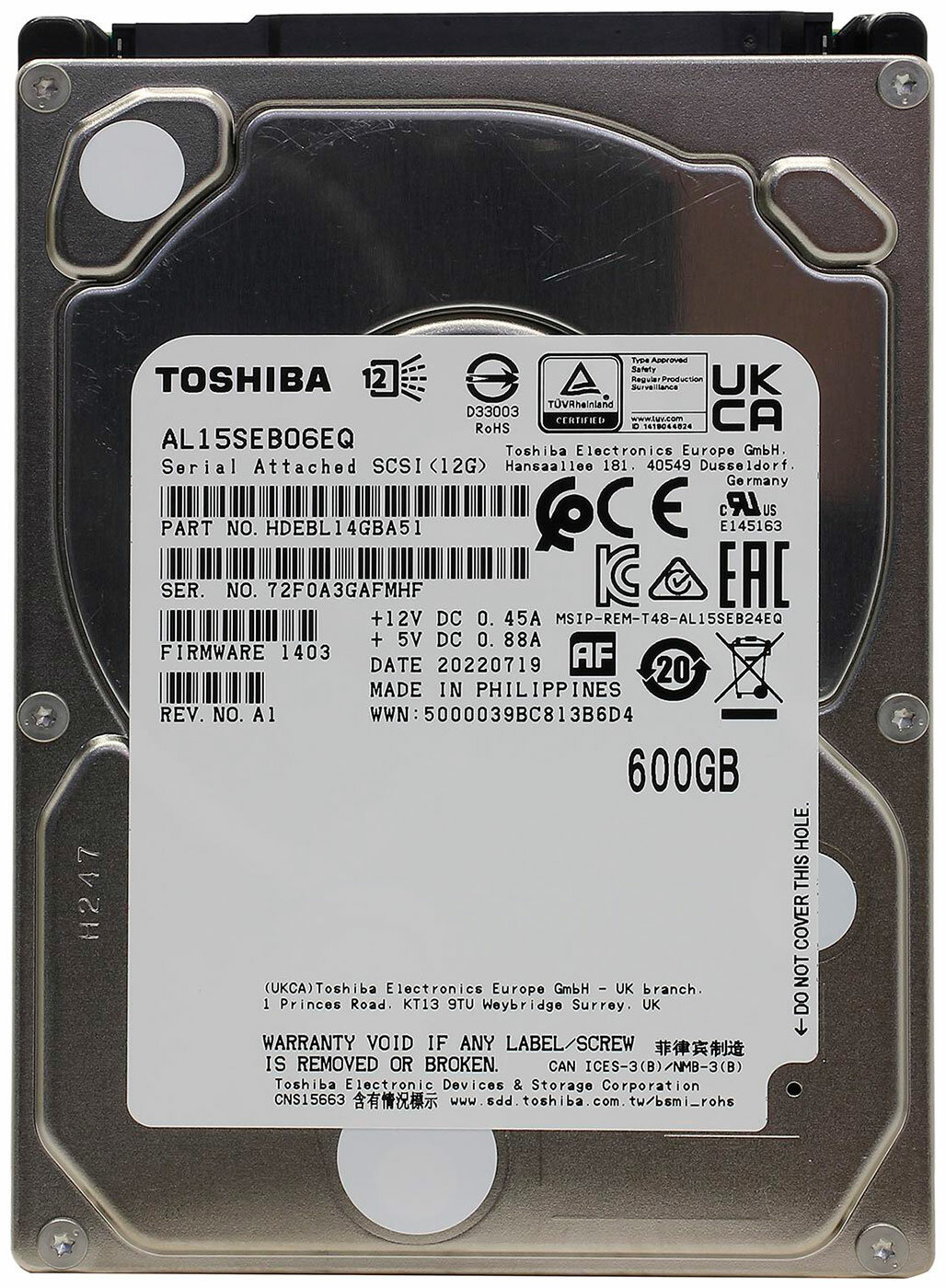 600Gb Toshiba (al15seb06eq) sas 12Gb/s, 10 500 rpm, 128Mb buffer, 3.5"