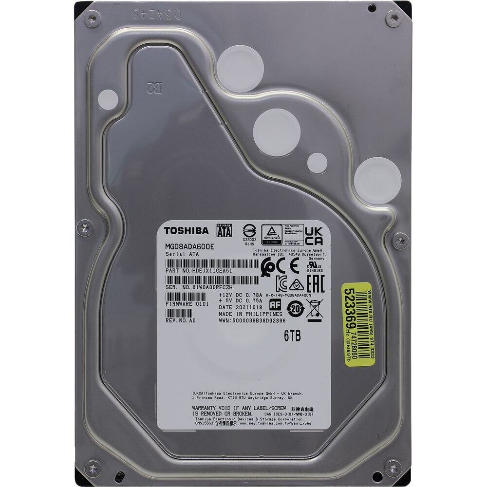 Жесткий диск SAS 6TB 7200RPM 12GB/S 256MB MG08SDA600E TOSHIBA интересное: