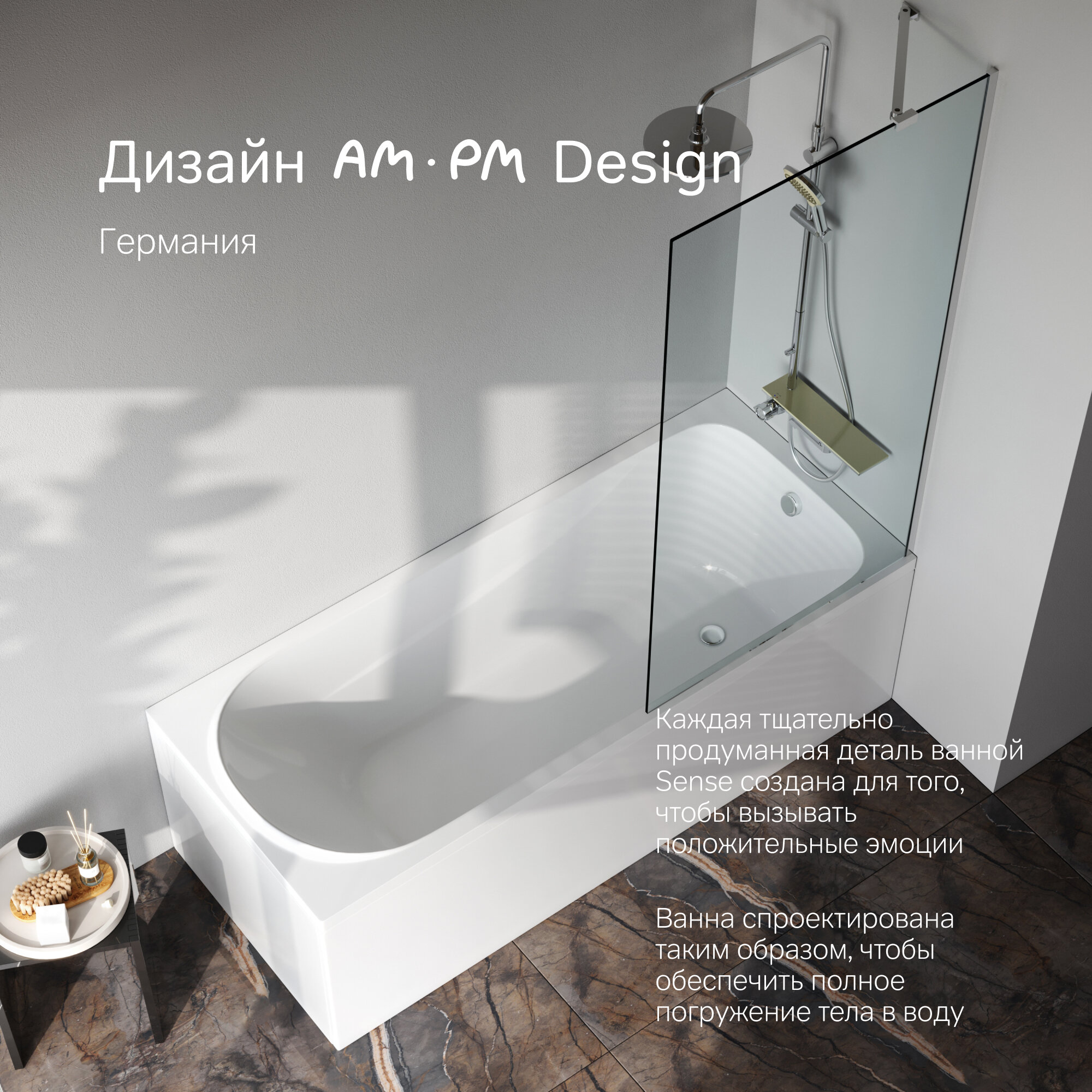 Комплект 3 в 1 ванна акриловая AM.PM Sense 170x70 с каркасом, фронтальной панелью, и слив переливом интересное:
