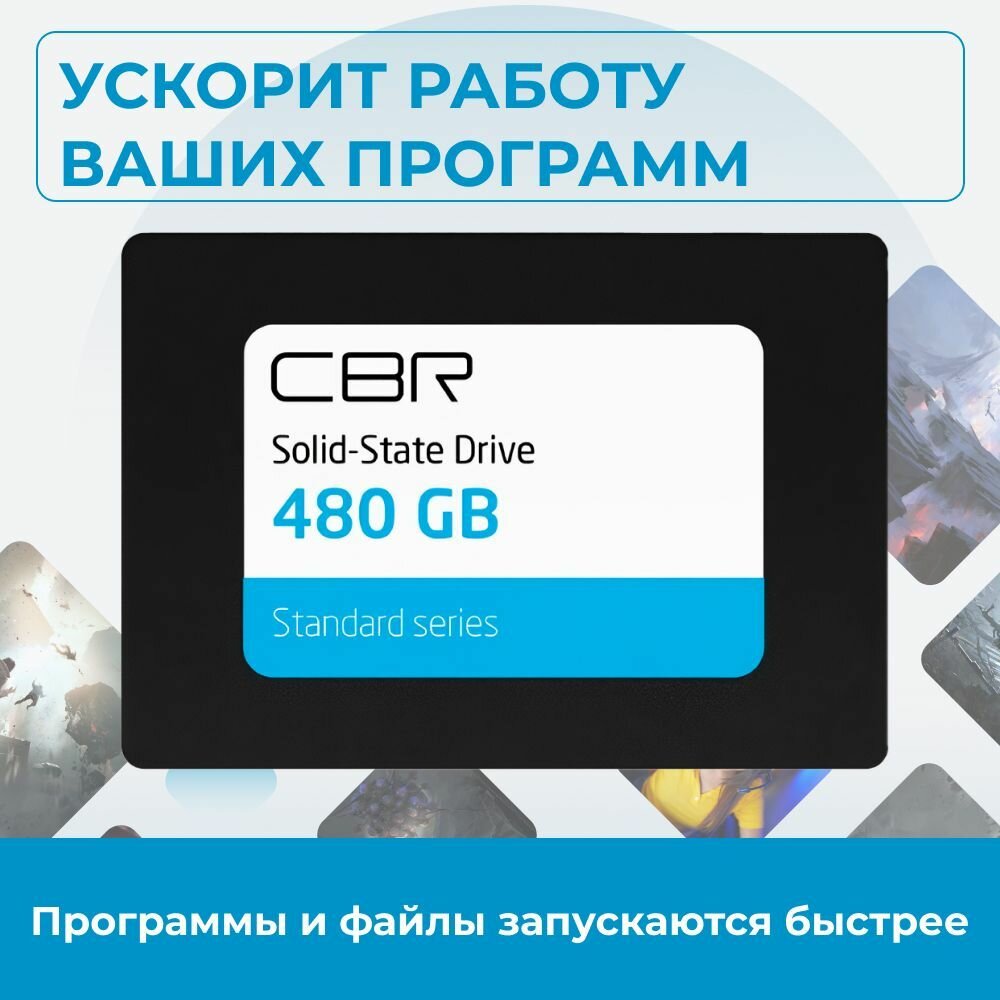СохранитьCBR Внутренний SSD-накопитель Ssd-480gb-2.5-st21, серия "Standard", 480 GB, 2.5", Sata III 6 Gbit/s, интересное: