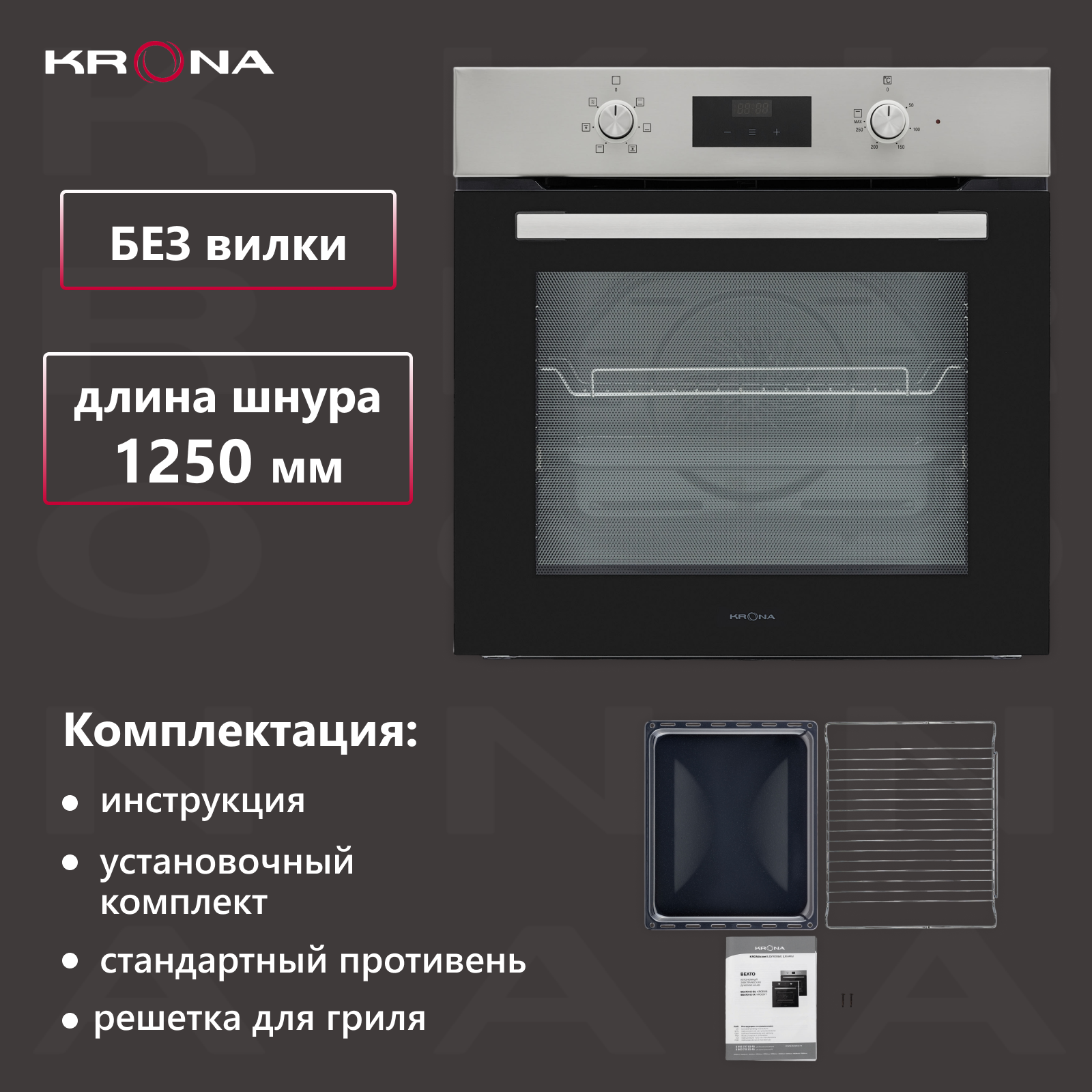 Духовой шкаф KRONA BEATO 60 BL встраиваемый электрический (независимый)